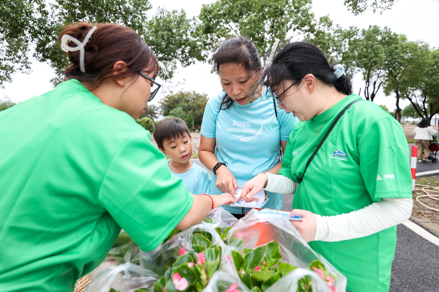 参赛队员们通过赛事领略三灶村美丽乡村的生态宜居,体验农文体旅融合发展的蓬勃活力,共同见证丰收背后的乡土风情。跟随父母参赛的小杨来自徐汇区,第一次体验农耕体育活动:“定向赛能锻炼身体,又能体验农活,感觉很好玩,也让我更懂得珍惜粮食,这是农民的劳动成果。”