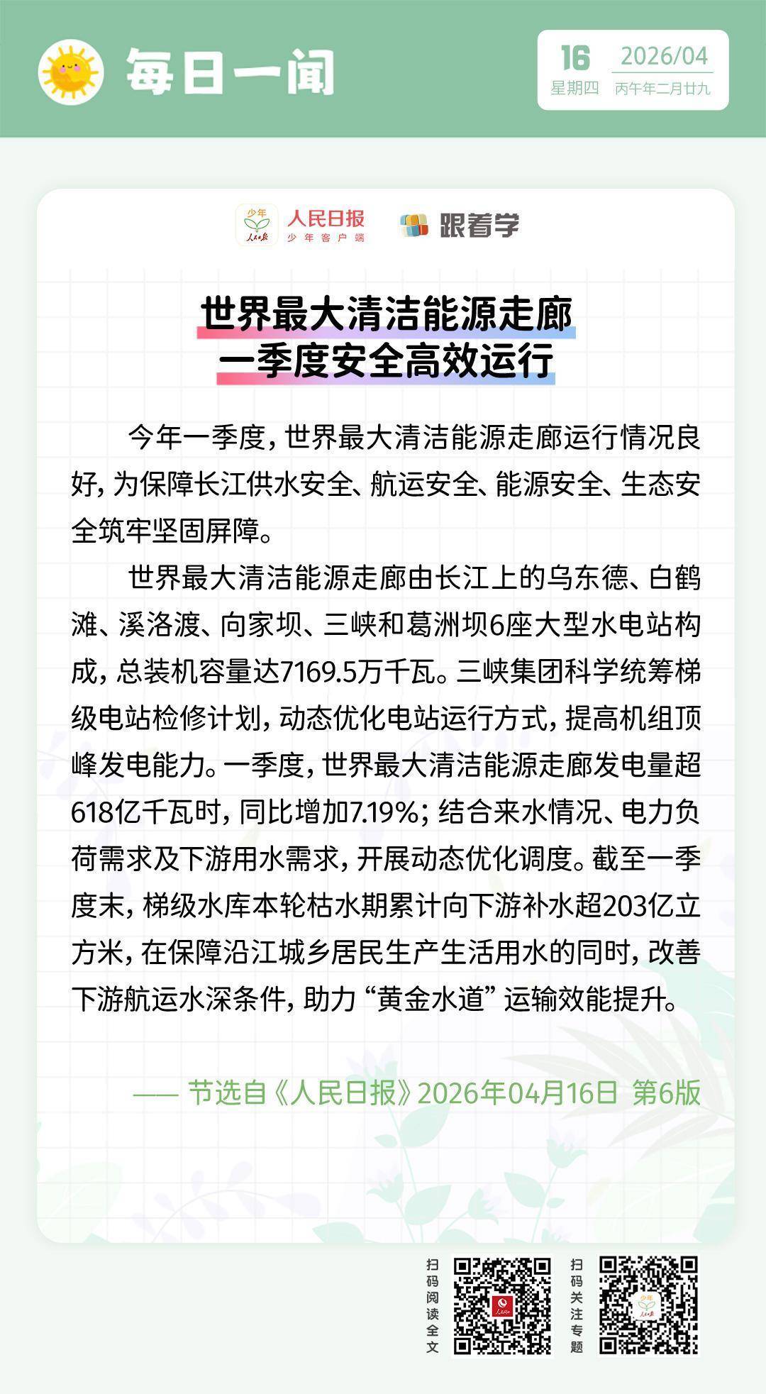安全的股票配资平台 每日一闻丨世界最大清洁能源走廊一季度安全高效运行